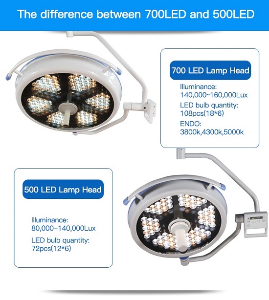 Model 700/500 Illuminance(Lux): 160000Lux/140000Lux, LED bulb: 180 pcs
